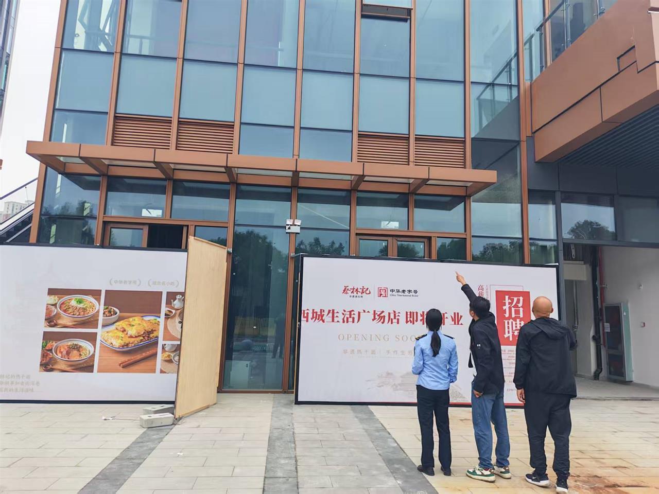 户外广告招牌设施,不仅是市容市貌的重要组成部分,还关系着居民安全出行。执法中心对辖区内广告招牌展开安全巡检,重点检查广告招牌的支架稳固性,排查是否存在锈蚀、老化、松动、变形等结构性安全隐患。同时,执法队员现场指导商户规范安装、维护广告招牌,普及安全知识,提升商户主体责任意识,从源头预防安全事故。