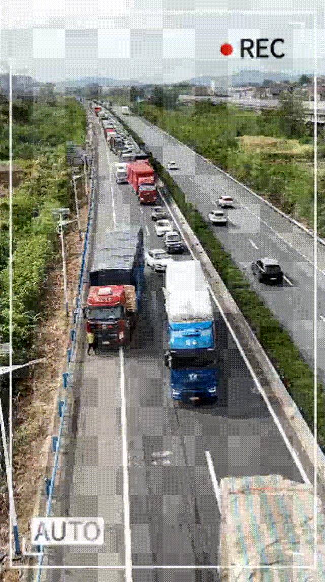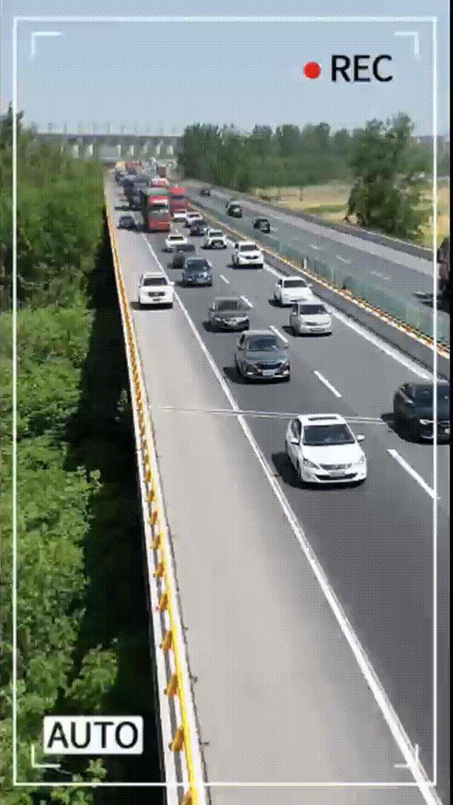 双节期间,湖北交警充分利用无人机视角广的特点,对高速公路重点路段开展巡逻。