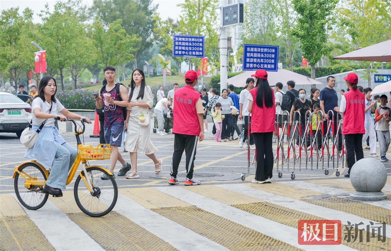 10月1日上午,国庆长假正式开启,武汉市东湖风景区迎来大量观光赏景的游客。新闻记者在现场看到,东湖绿道梨园入口处人流有序涌动,游客们带着节日的喜悦,或举家出行漫步绿道,或驻足打卡湖面风光,早早开启了假期休闲时光。