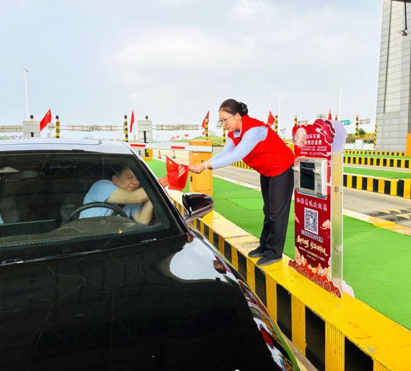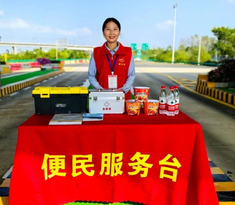 为应对国庆期间车流高峰,机场高速及武阳高速沿线共设置6处便民服务台,提供热水、应急药品、路线咨询及简易工具等,工作人员24小时在岗,及时响应司乘需求。现场管理人员除解答咨询外,还向司乘赠送国庆专属纪念品,提升出行体验。