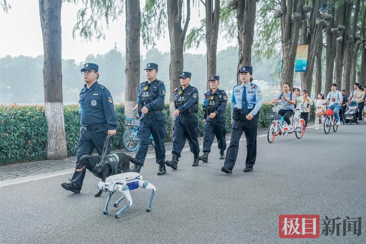 为筑牢游客出行安全防线,东湖公安分局整合巡特警、交警、义警等多方力量等多警种力量,并派出机械犬与警犬组成“特殊巡逻队”,以科技+人力的守护模式,为节日景区安全注入新活力。