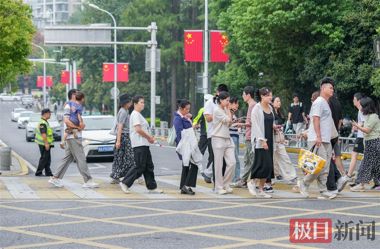 10月1日,国庆长假首日,武汉东湖风景区迎来首批游客,东湖绿道梨园段人流渐增,游客们携家带口赏湖光山色,开启假期时光。