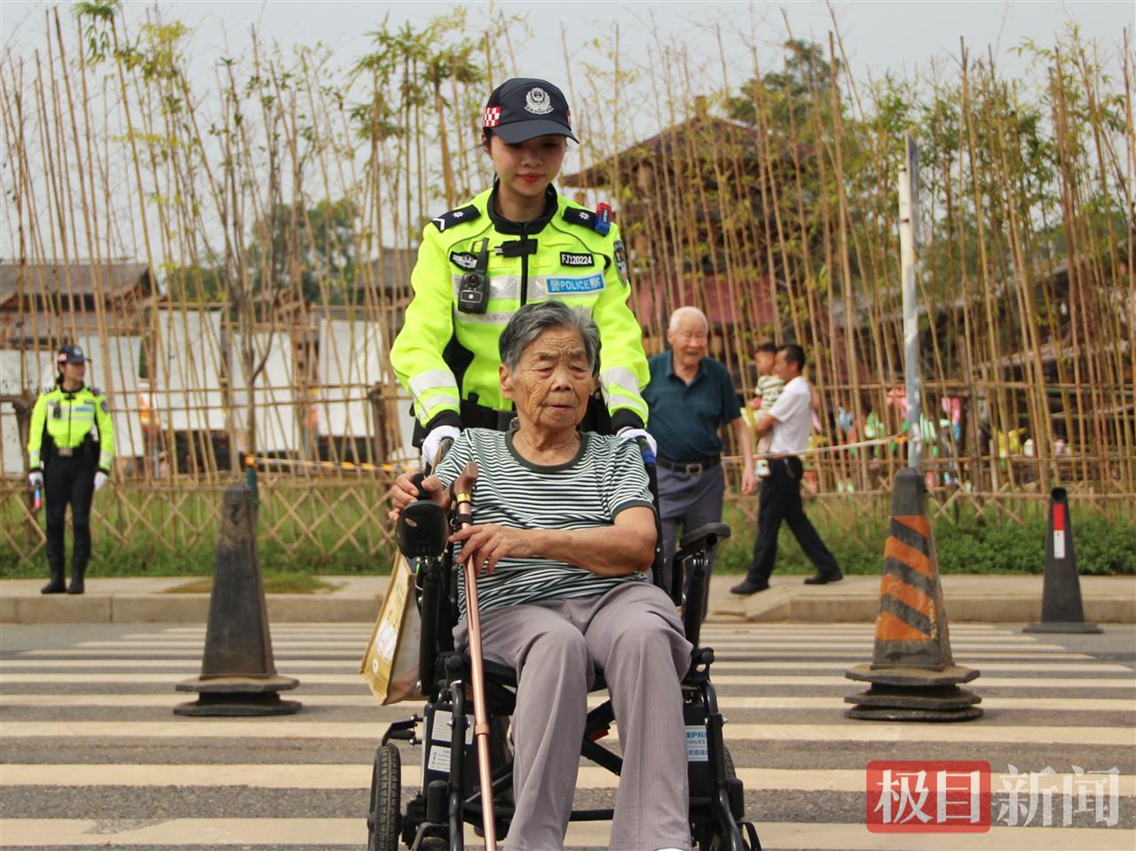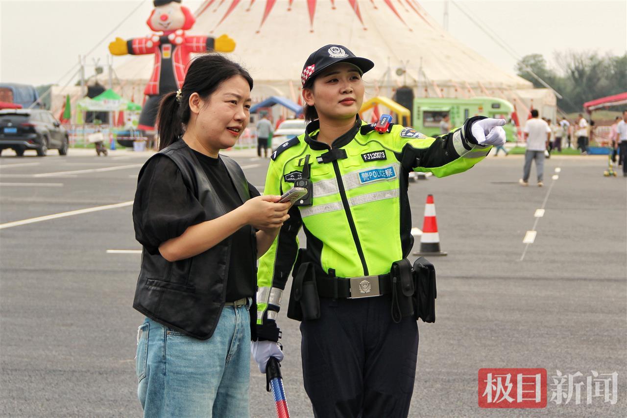 在执勤期间,队员们一边维护现场秩序,一边密切关注周边情况,及时为群众提供帮助。遇到坐轮椅的老人过马路,她们主动上前协助推车;遇到小商贩将三轮车停在路边,她们上前提醒:“这里不能停车,下完货后请尽快驶离。”游客问路时,她们不仅耐心指引方向,还会主动提醒:“前方路段封路,请把车辆停在路边停车场后步行前往。”