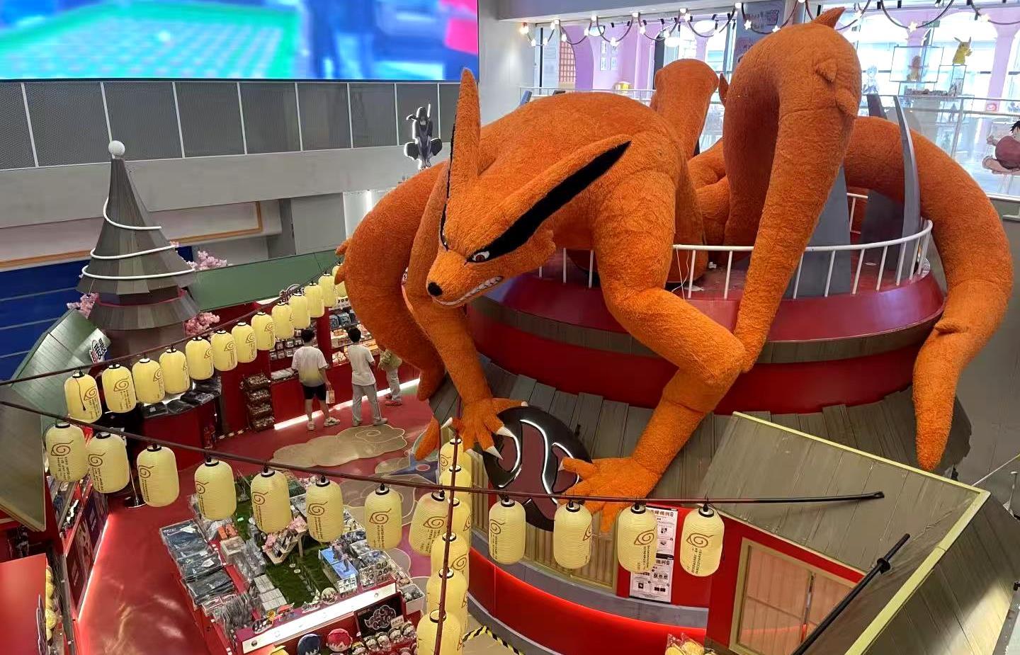 记者看到,现场划分出五大沉浸式展区,每一处都藏着火影迷的“心头好”。其中,8米长的巨型九尾雕像堪称“镇展之宝”,立体造型霸气侧漏,细节还原度拉满,成为观众打卡的“第一站”;而“动画经典打卡场景区”更是让粉丝直呼爷青回——鸣人的童年小屋、“初现羁绊”的经典对话场景、“卡卡西、鸣人、佐助和小樱”小分队集合,搭配同步播放的超燃动画片段,仿佛将动画里的热血瞬间搬进现实,不少观众驻足拍照,沉浸式重温剧情。