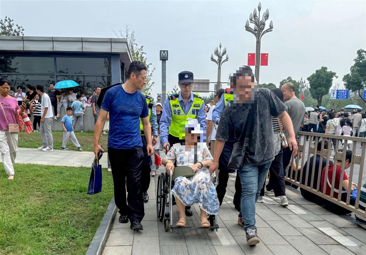 很快,快反机动大队大队长王亚杰也赶到了现场。他迅速组织队员疏散围观群众,开辟绿色通道,并呼叫地铁工作人员取来轮椅将婆婆转移至地铁站外阴凉通风处休息。