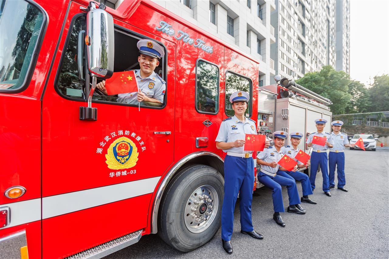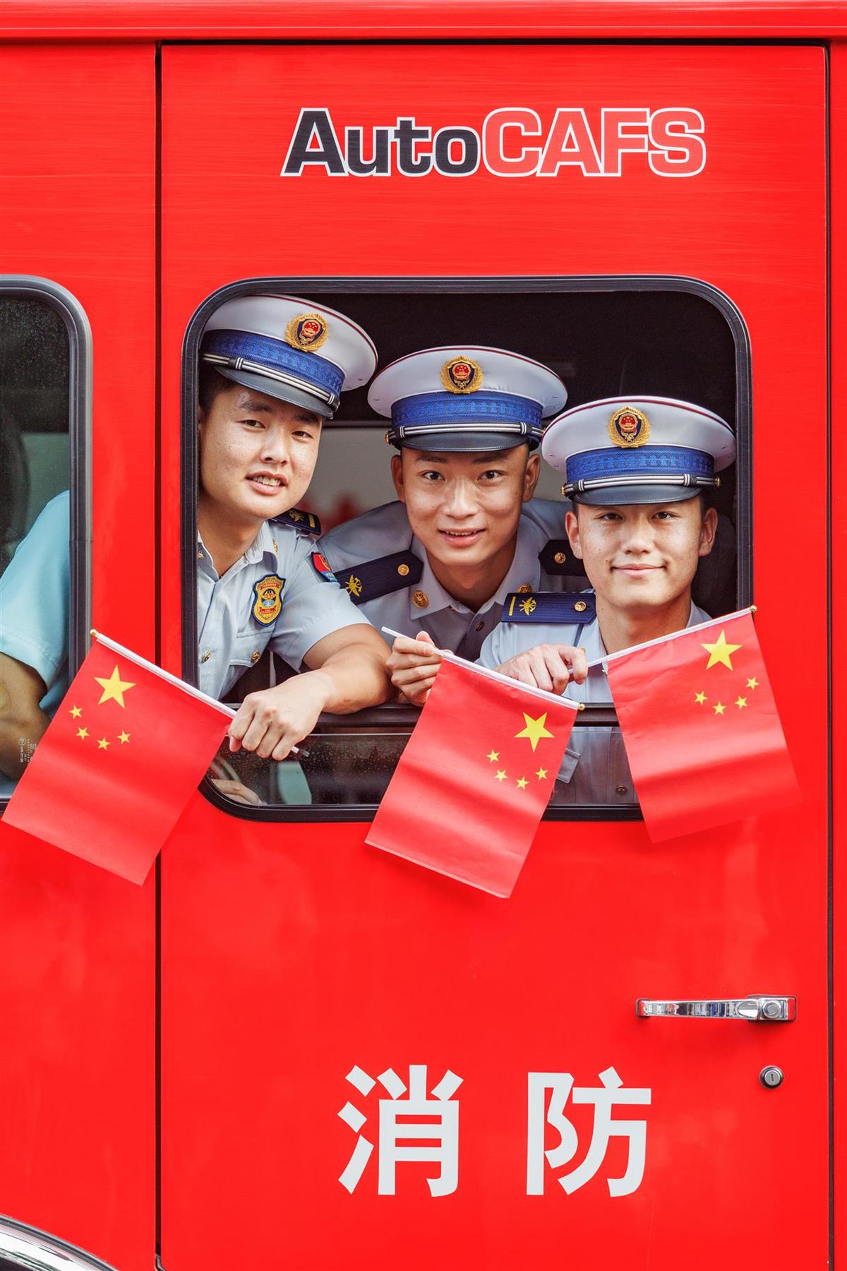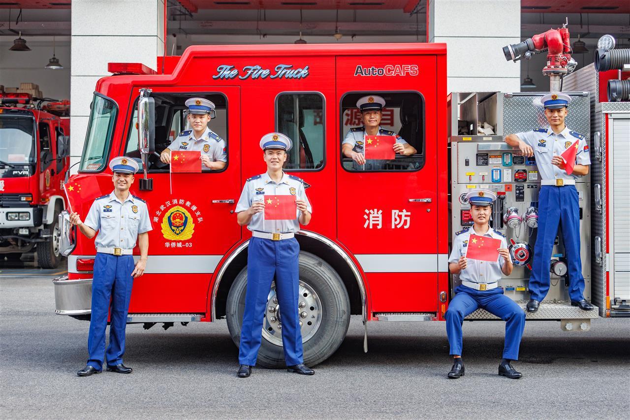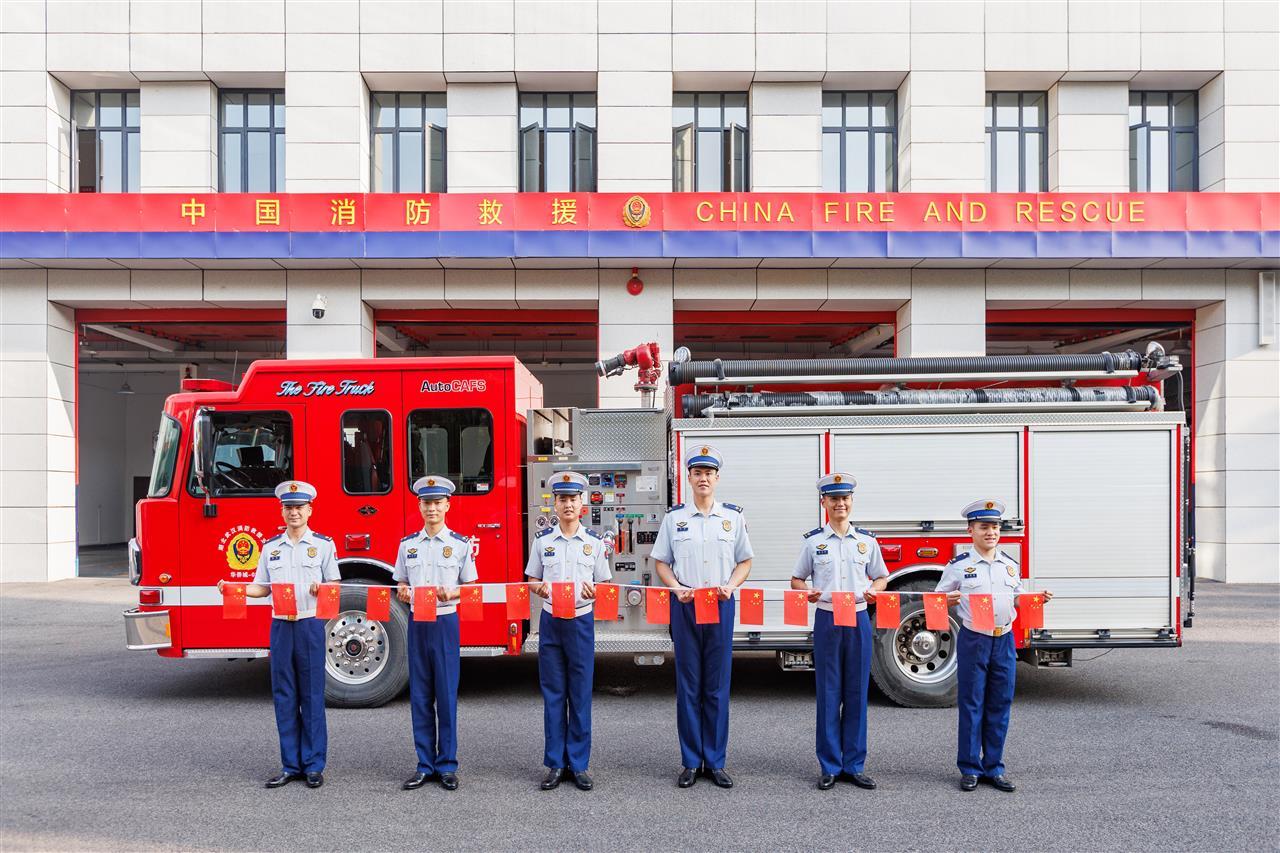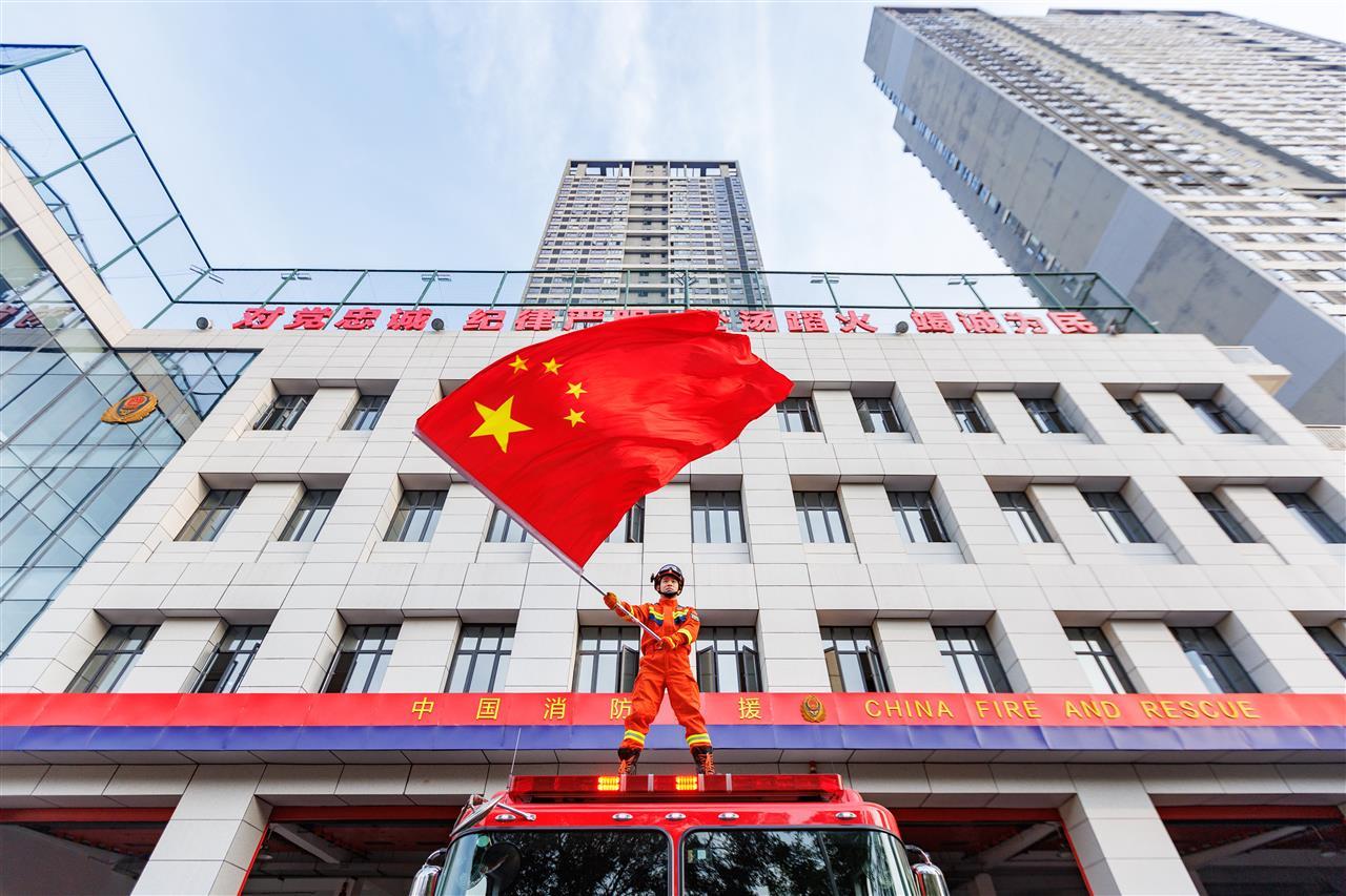 我们熟悉的消防员,总是与“急促”相连——警铃响起,他们冲锋的背影定格在火场与洪流之中。今天,他们暂缓脚步,穿上象征着责任与荣誉的“火焰蓝”,在新中国76岁华诞之际,与心中的信仰之红留下最灿烂的合影。