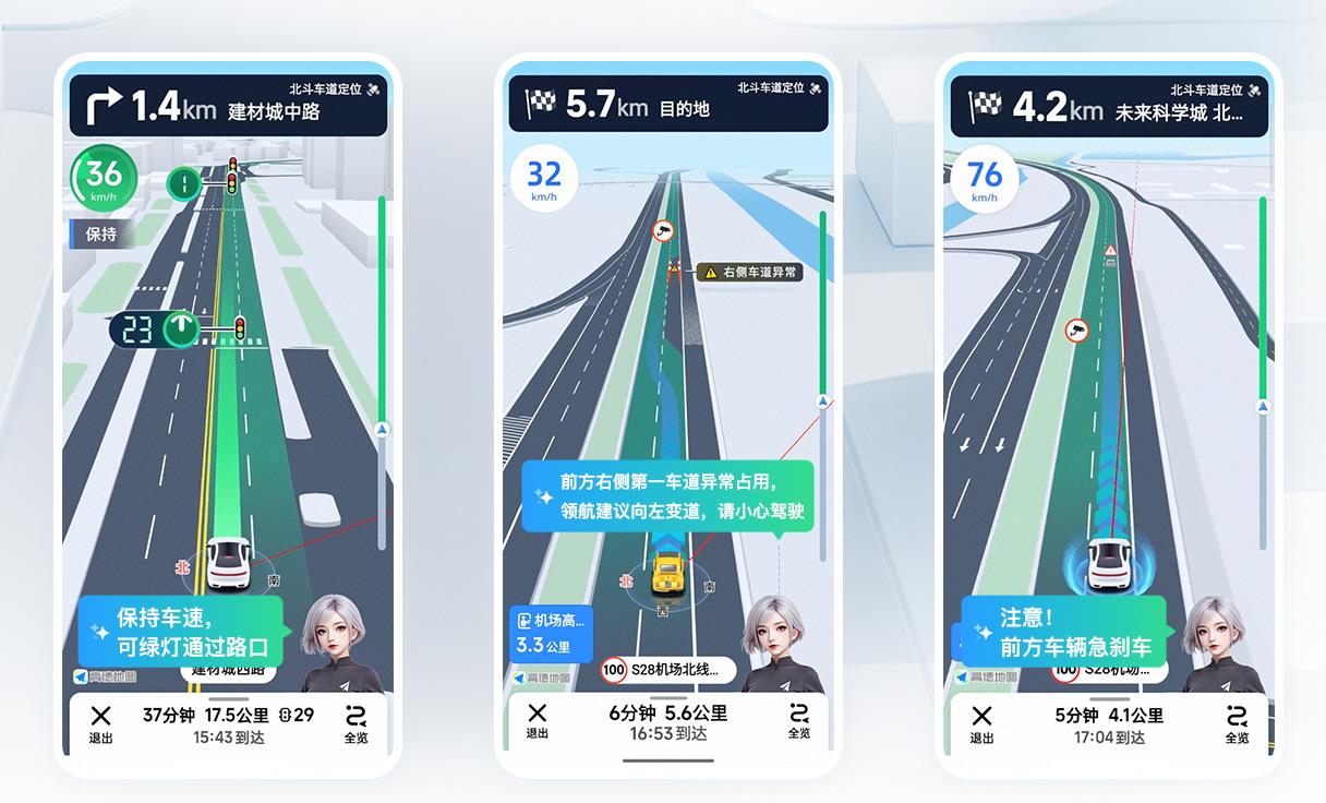 高德正不断将空间智能融入各类产品功能:AI领航,基于北斗不仅能够帮助用户准确识别车道变化,还能通过与应急管理部中国安科院联合发布的“鹰眼守护”预警系统,秒级提示各类异常情况,国庆长假首日即发出安全预警超2.9亿次;在应急救援方面,高德卫星求救应用北斗高精定位,目前已在全国累计救助超过100人;而紧跟北斗全球化脚步,高德世界地图也已覆盖超200个国家和地区。