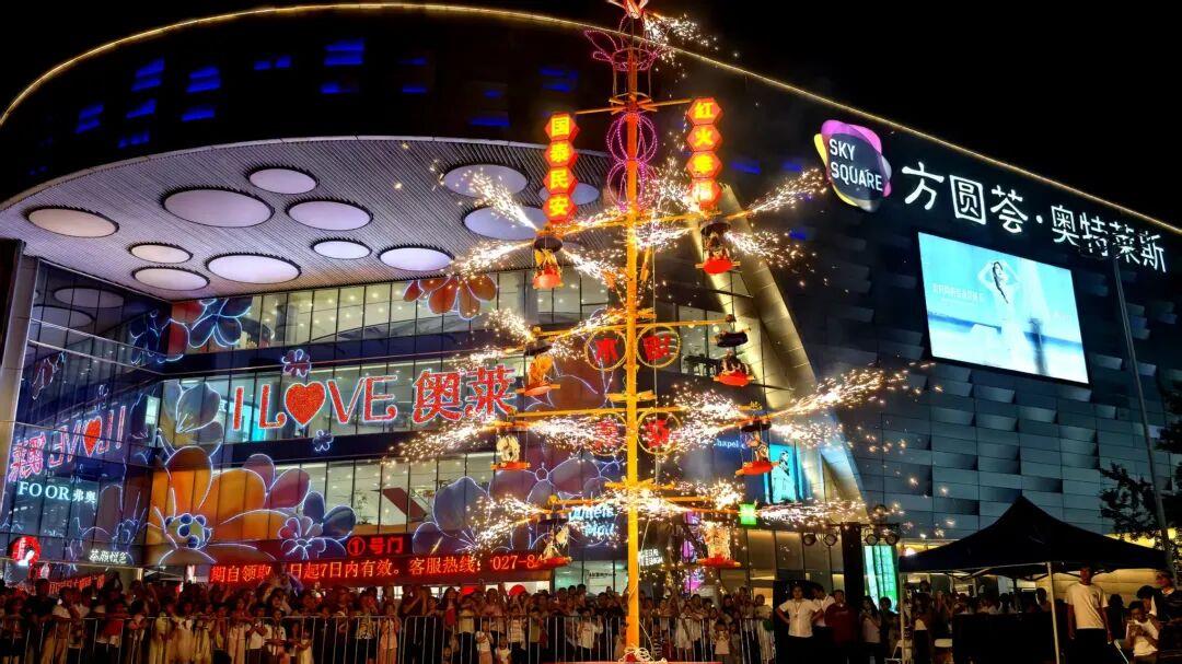 方圆荟·奥特莱斯非遗烟火大秀引民众围观