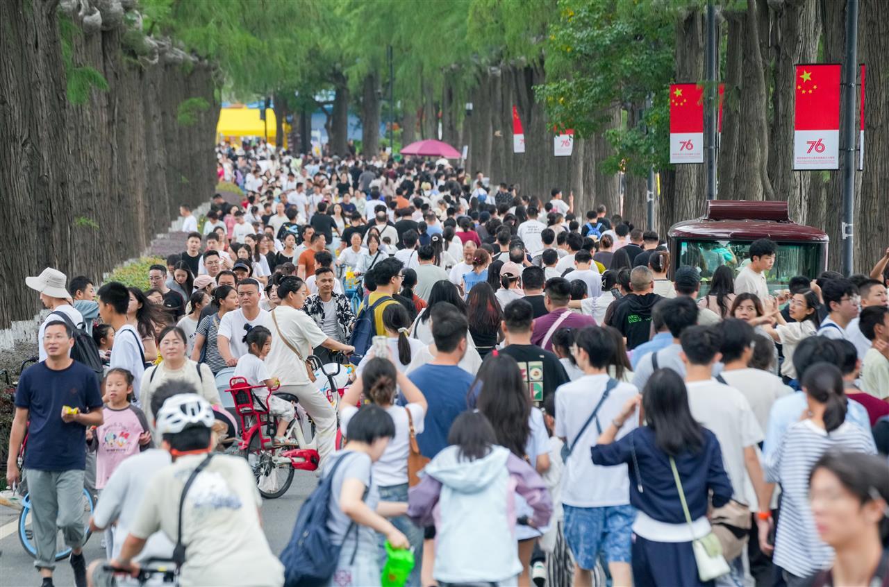 国庆长假期间,武汉东湖风景区迎来客流高峰,东湖绿道、听涛景区、磨山景区等核心区域游客量持续攀升,“爆棚”场景成为假期里的热闹图景。