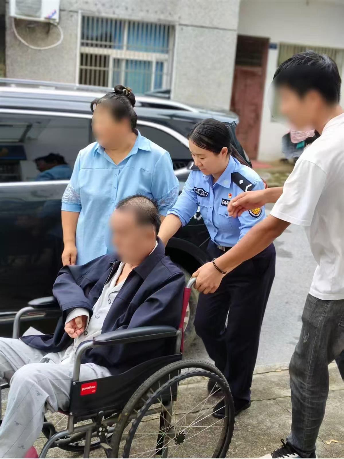 当天下午3时许,曹先生在儿子的护送下,来到徐古派出所办理身份证换证业务。由于曹先生行动不便,这一寻常业务对他们而言却显得格外艰难。见此情景,值班辅警周燕立即主动迎上前去,启动便民服务机制。她协助家属将曹先生小心翼翼地扶上轮椅,并全程推着轮椅,熟练地引导他们办理各项手续。