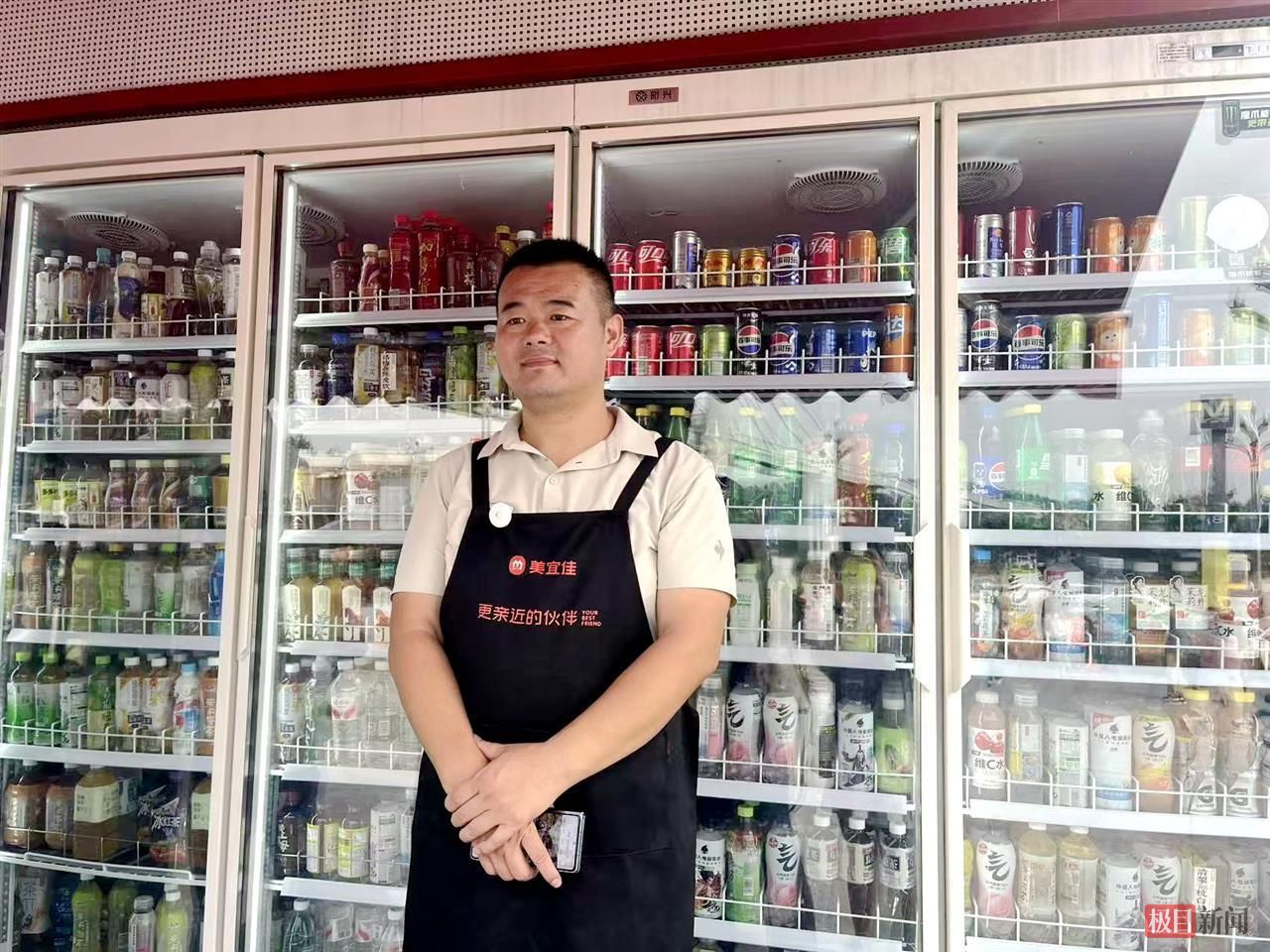 “需要什么水?我帮你拿,这边扫码付款就行!”3日下午,武汉东湖高新区光谷四路地铁站出口的便利店前,38岁的老板金贵平正忙着招呼往来游客。他留着利落的寸头,穿一件干净的白色短袖,腰间系着深色围兜,抬手取货、指引付款的动作干脆麻利,浑身透着股实诚干练的劲儿。