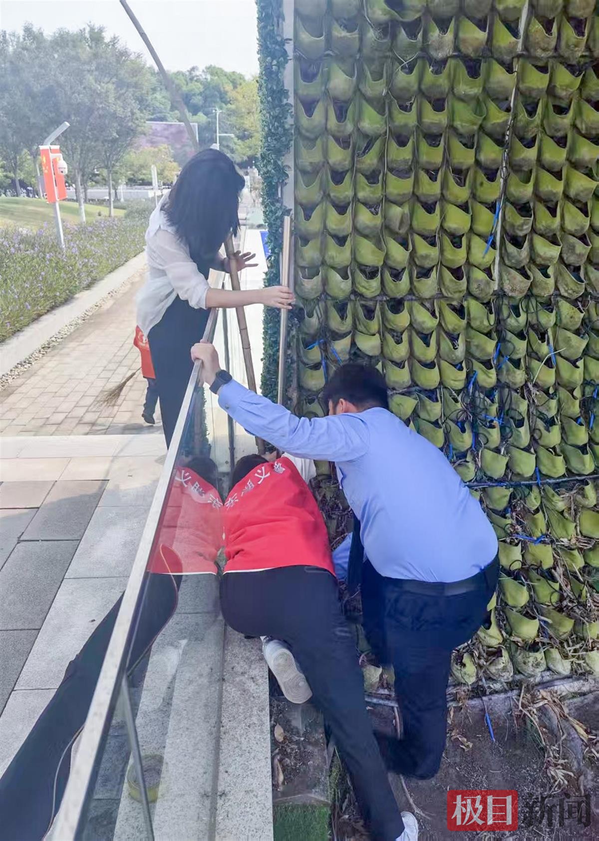 时间倒回10月3日10时许,李女士准备到东湖梨园游玩,出地铁来到梨园-漫商业街时,她把手机搁在旁边的玻璃护栏上准备拔下耳机,不料手机不慎滑落,掉进护栏外一处狭窄缝隙中。