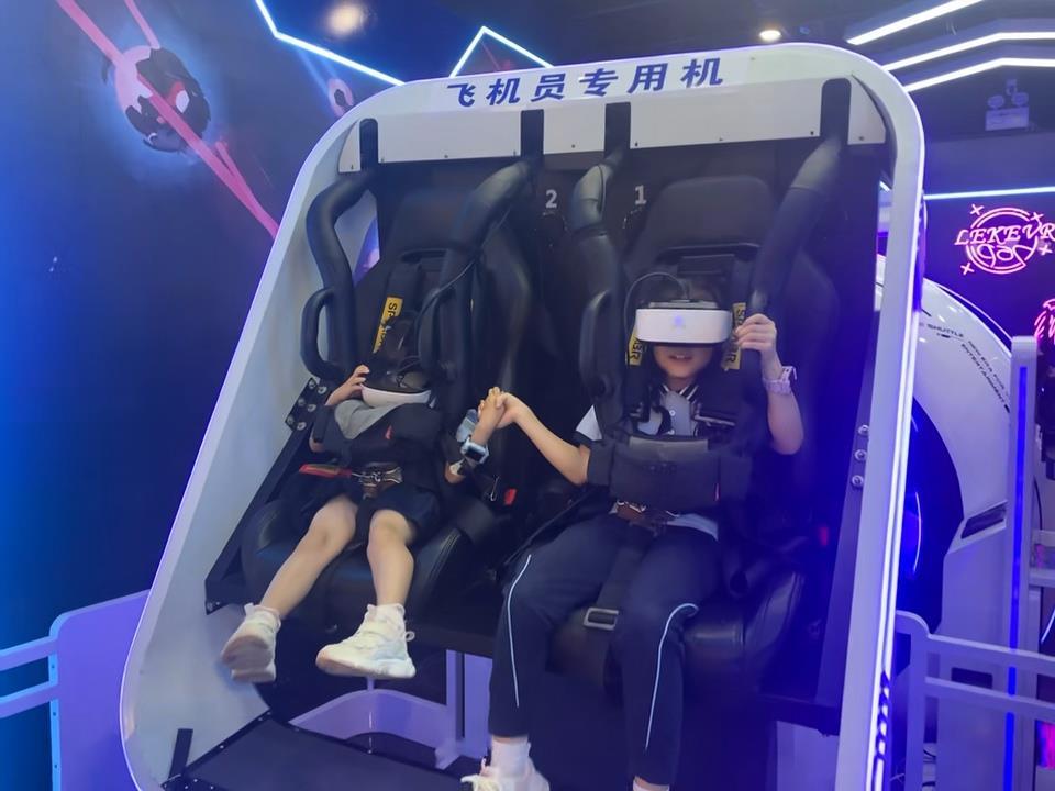 乐客VR武汉荟聚店的店长张弛介绍,他们的设备特别考虑了亲子家庭的需求。“双人飞行影院可以让家长和孩子并肩而坐,共同体验飞行的乐趣。而时空穿梭机2.0则提供了多个不同游览主题的选择,适合各个年龄段的游客。”