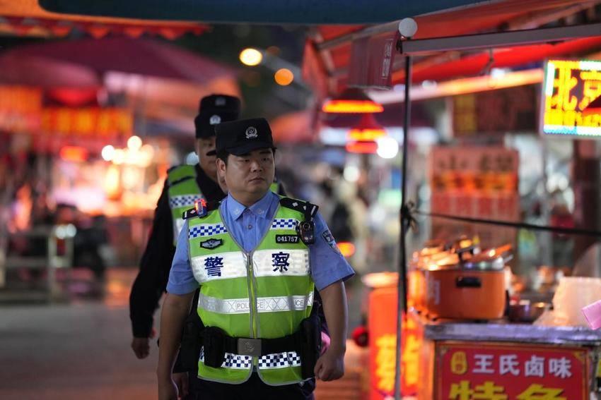 华灯初上,梅教街夜市逐渐热闹起来。“刘警官,又来巡逻啦!”卖王氏卤味的王老板笑着和巡特警大队民警刘文博打招呼。节日期间,新区公安在辖区重点线路开展“警车+摩托车+无人机”的“空地一体”叠加巡逻,对人员密集场所,加强巡查力度,提升见警率,确保重点街区、景区、商超“见警察、见警灯、见警车”,切实让群众感到安全就在身边。