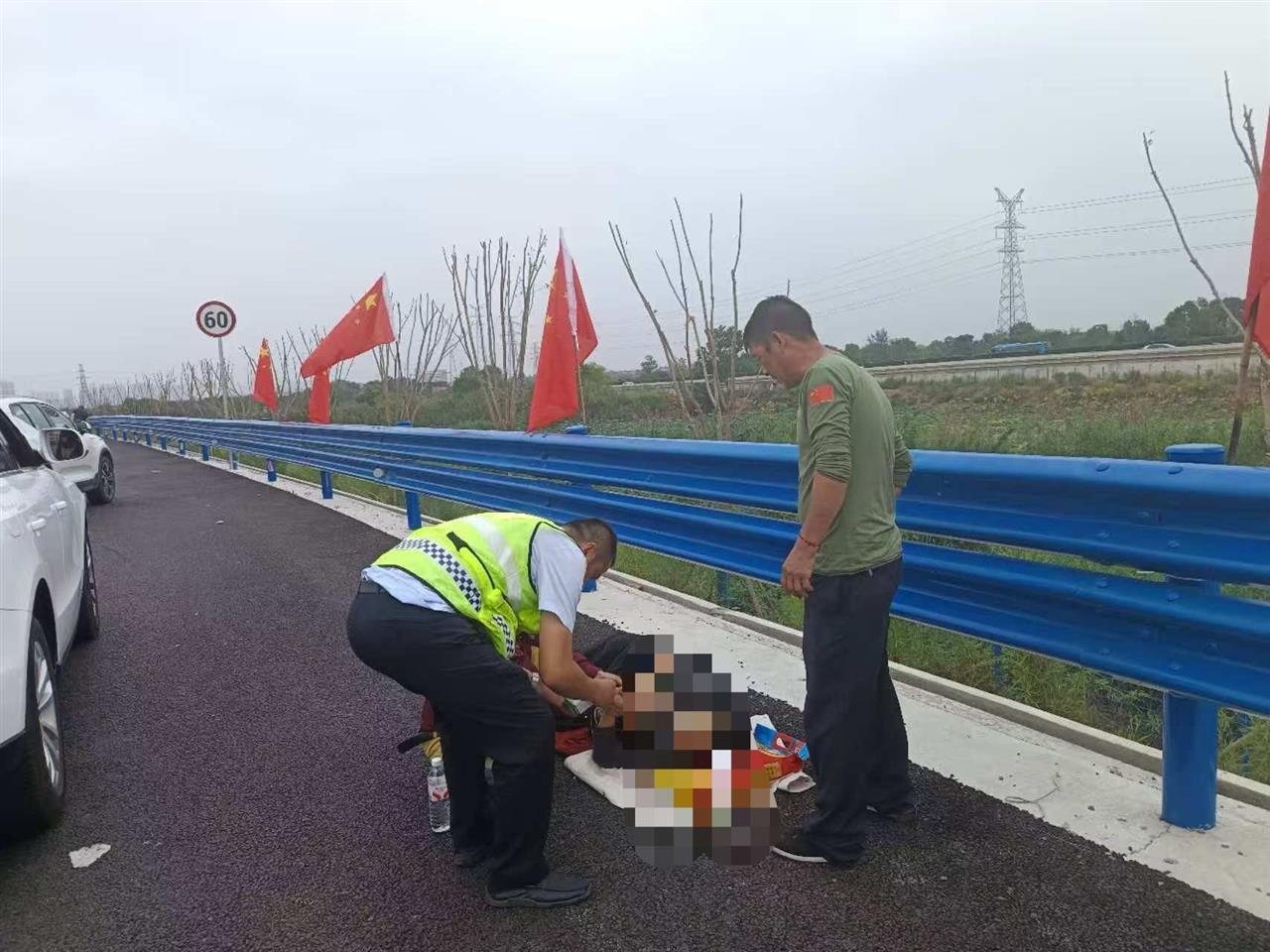 当天14时58分,收费站工作人员在巡查时发现一辆小轿车停在广场边缘,一名女士躺倒在地,面色苍白。经询问得知,张女士一家从江西自驾返程,因长途行车晕车严重,不得不中途停车休息,但因身体虚弱一时难以行动。