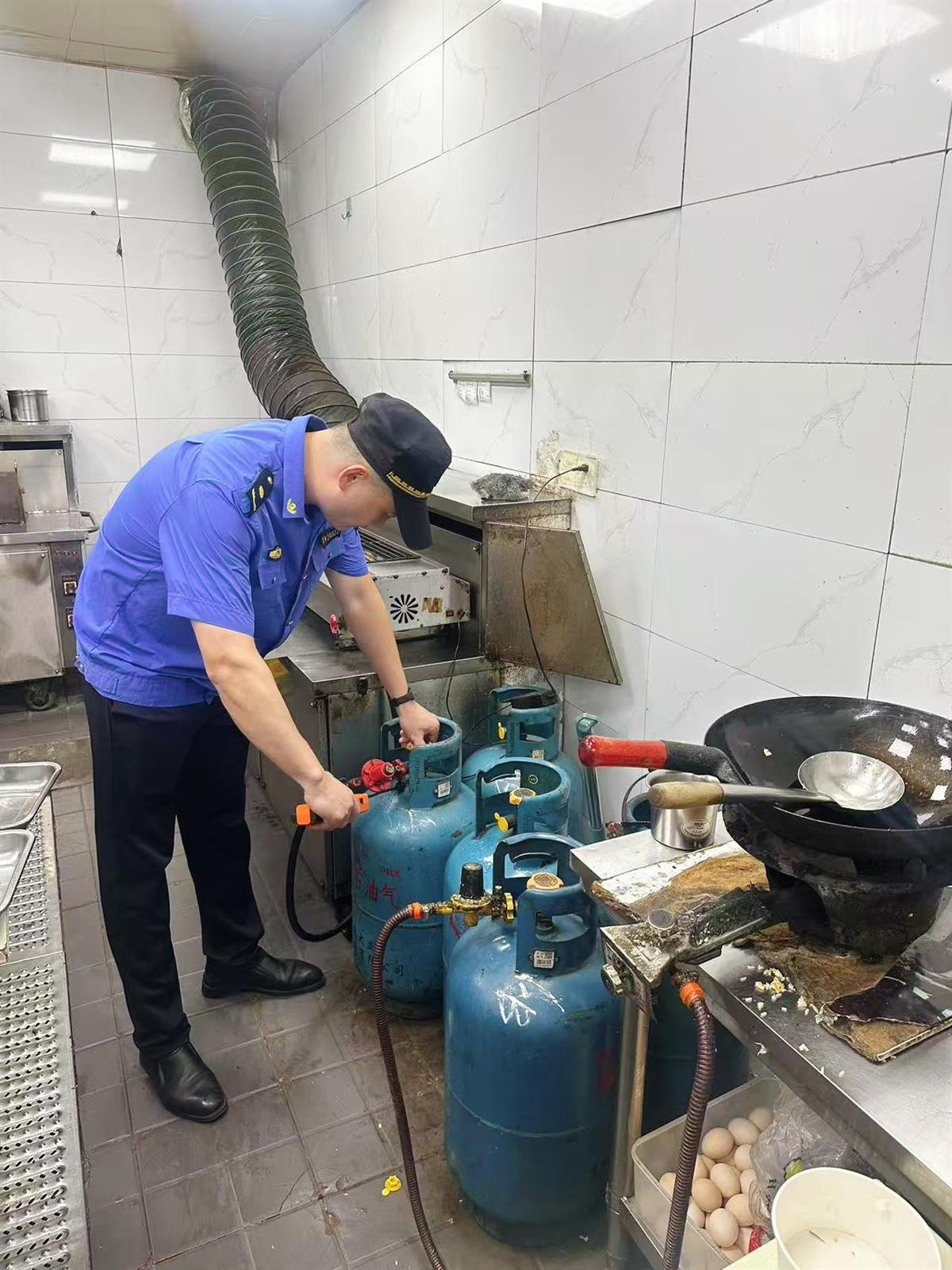 城管队员排查燃气安全隐患