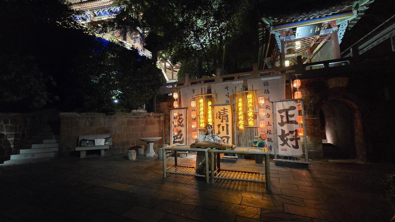 第二会场“古晴川阁”长台阶前的表演也如期开始。《紫竹调》、《茉莉花》等民乐演奏,传递着中国传统音乐的独特韵味。
