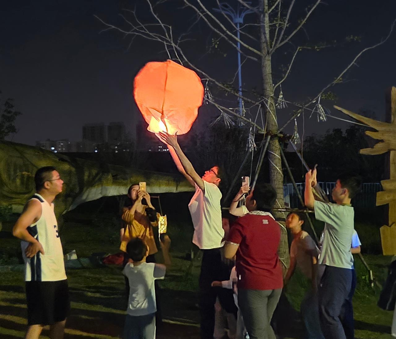 无人机表演虽已落幕,但园区的夜生活仍在继续。电子孔明灯在指定区域缓缓升起,舞台上的嘻哈表演引爆年轻观众的热情。这场持续整个黄金周的庆典,用科技与艺术交织,为市民留下美好记忆。