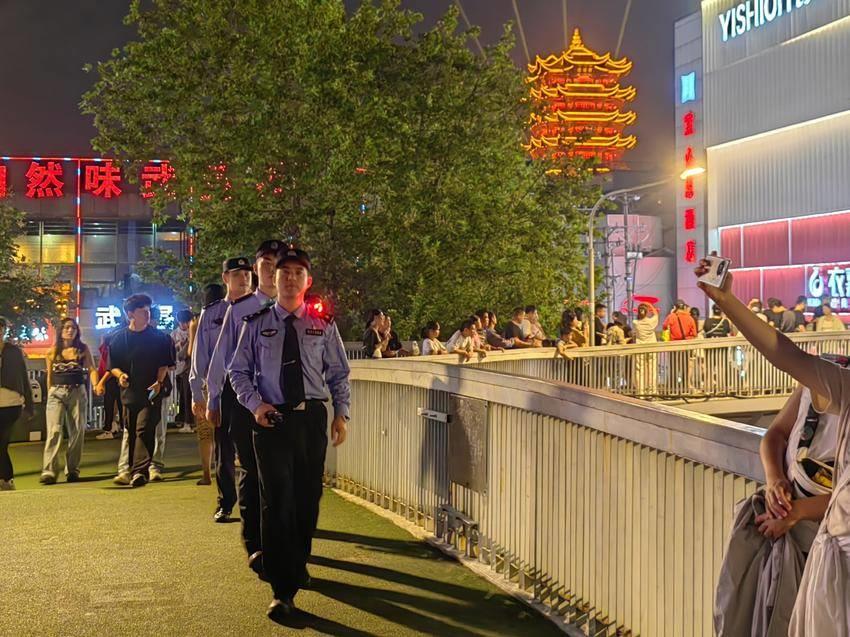 中秋清辉满庭圆,坚守换得万家安。中秋节恰逢国庆长假,游客纷纷走上长江大桥、司门口天桥,举起手机打卡“夜上黄鹤楼”,楚河汉街、梦时代等商圈华灯映照,祥和温馨。节日氛围中的武昌区公安民警辅警,以坚实的脚步丈量辖区街巷,携“黄鹤卫士”日夜巡逻,用科技的力量确保大客流下道路通畅,操作无人机助力疏导交通,他们默默地将平安写进城市的每一个角落。