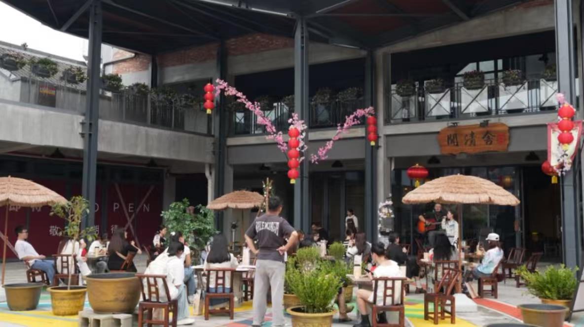 走在街区里,不远处火车的呼啸与市井喧嚣交织,古韵建筑与新潮业态相映,处处是鲜活热闹的画面。