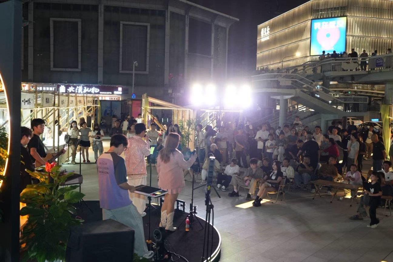 另一侧的广场上,一场音乐派对正吸引不少游客围观,晚风中、灯光下、老歌里,大家共织秋夜梦。
