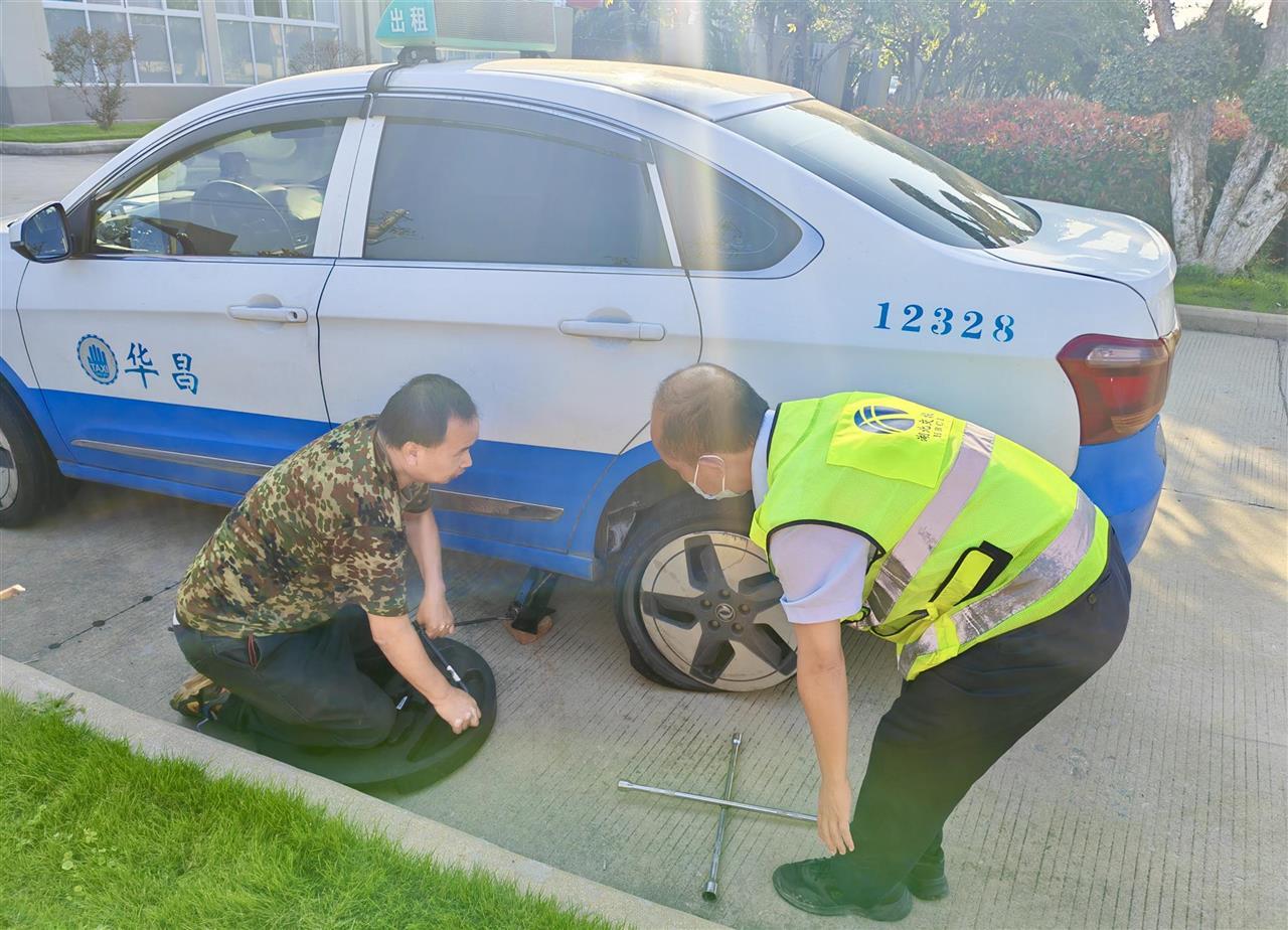 10月7日8时许,国庆出行高峰期间,武英高速汪集管理所值班员发现出口外广场有辆出租车未设警示标志停靠。经询问,司机张先生称车辆行驶至距离汪集收费站1公里处时左后胎爆胎,因缺少维修工具无法更换。