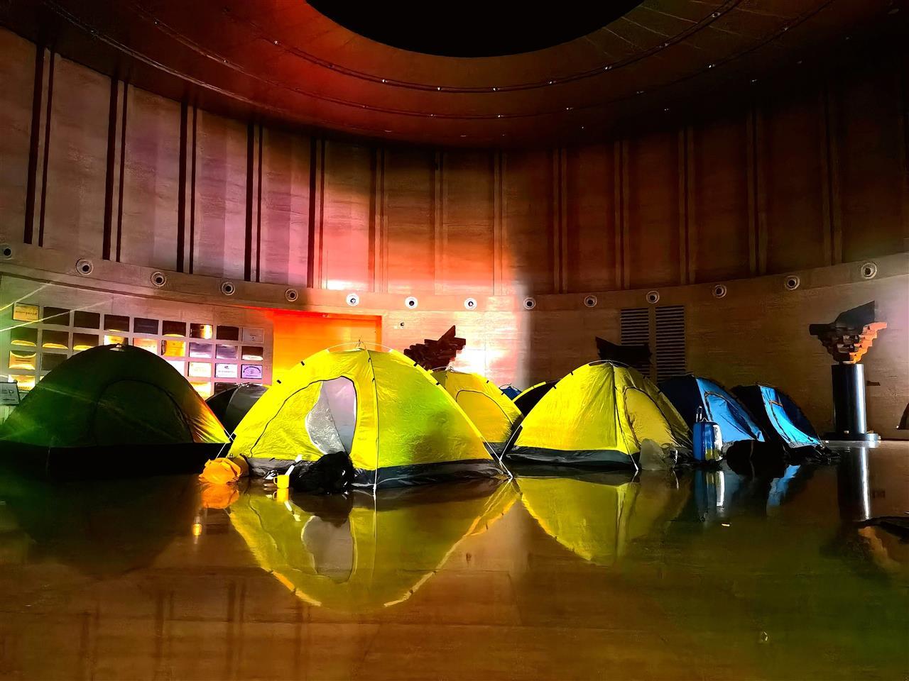 “第一次在博物馆里扎帐篷,我觉得很新鲜,睡不着。”很多孩子难掩兴奋,比如光谷未来学校二年级学生谢景澄就是这样,直到次日凌晨1时左右才安静下来。半夜,每个帐篷在夜光灯的衬托下,贴有反光条的边缘清晰可见,光滑的地砖上也反射出它们的倒影。