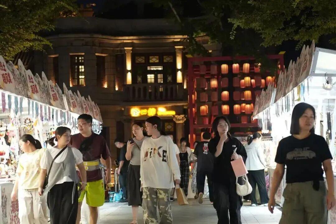 昙华林热土·晚风集X青春市集热闹开集,一个个绘着市井图景的摊位沿巷铺开,引来市民与游客热情打卡。
