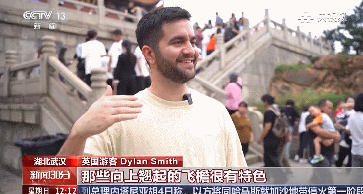 报道介绍了不少外国游客被黄鹤楼的建筑样式所吸引。“那些向上翘起的飞檐很有特色,与英国的建筑风格非常不同。这里的建筑华丽张扬,令人兴奋。”一名英国游客向记者说道。