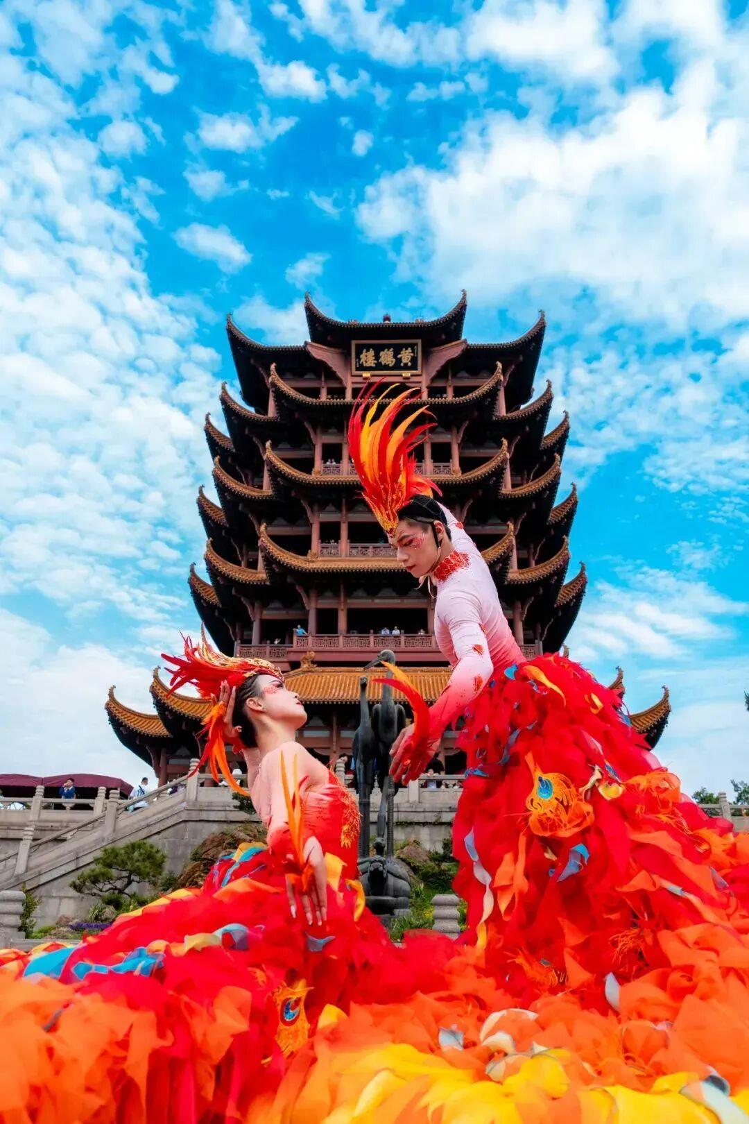 “夜上黄鹤楼”带着“点亮中国红·鹤舞庆双节”双节主题游园会热闹上场。
