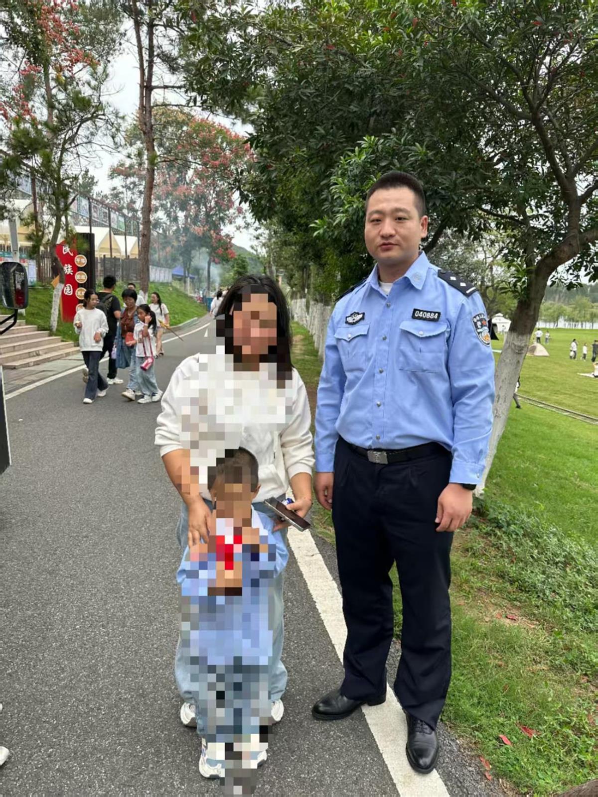 没过几分钟,新的警情又传来,有群众称在景区“捡”到一名小男孩,已交给了景区管理人员。民警立即向杨女士详细了解情况,随后带着她火速赶到景区管理处。当杨女士看到走失的儿子小宝元安然无恙时,眼中满是感激的泪水。