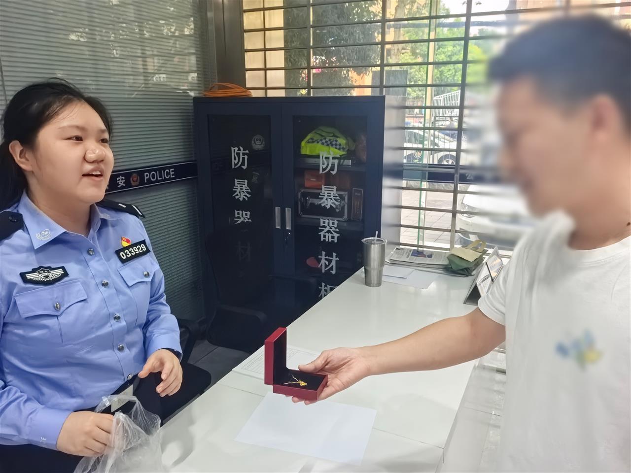 10月9日,武汉青山警方介绍,国庆假期的第3天,民警收到热心群众捡到上交的金首饰后,迅速开展研判搜寻,仅用1小时便成功将其物归原主,收获群众点赞。
