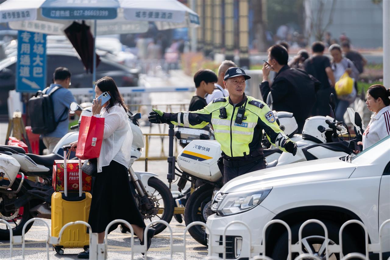 “十一”长假期间,武汉站作为重要交通枢纽,日均客流量接近30万人次。10月9日,武汉洪山警方介绍,为应对出行高峰,警方提前部署,通过强化巡逻防控、优化交通组织、提供便民服务等多项措施,全力维护车站及周边秩序,保障旅客安全顺畅出行。