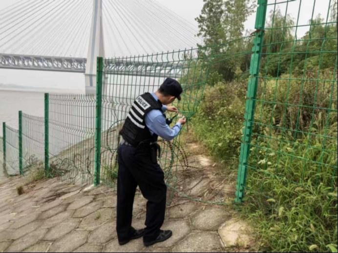 10月1日上午,第三警务综合服务站民警王珩力、辅警冯俊龙在辖区江滩水源保护区开展日常巡逻时,发现多处防护护栏遭损坏,存在人员随意进入、污染水体的安全隐患。发现问题后,民警立即对现场情况进行拍照记录,并第一时间联系生态环境、水务等相关管理部门及时将损坏处修复。