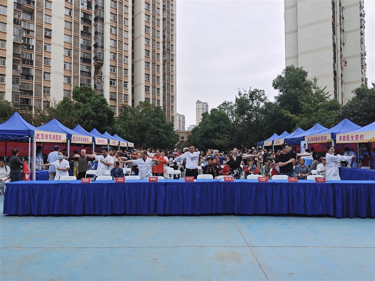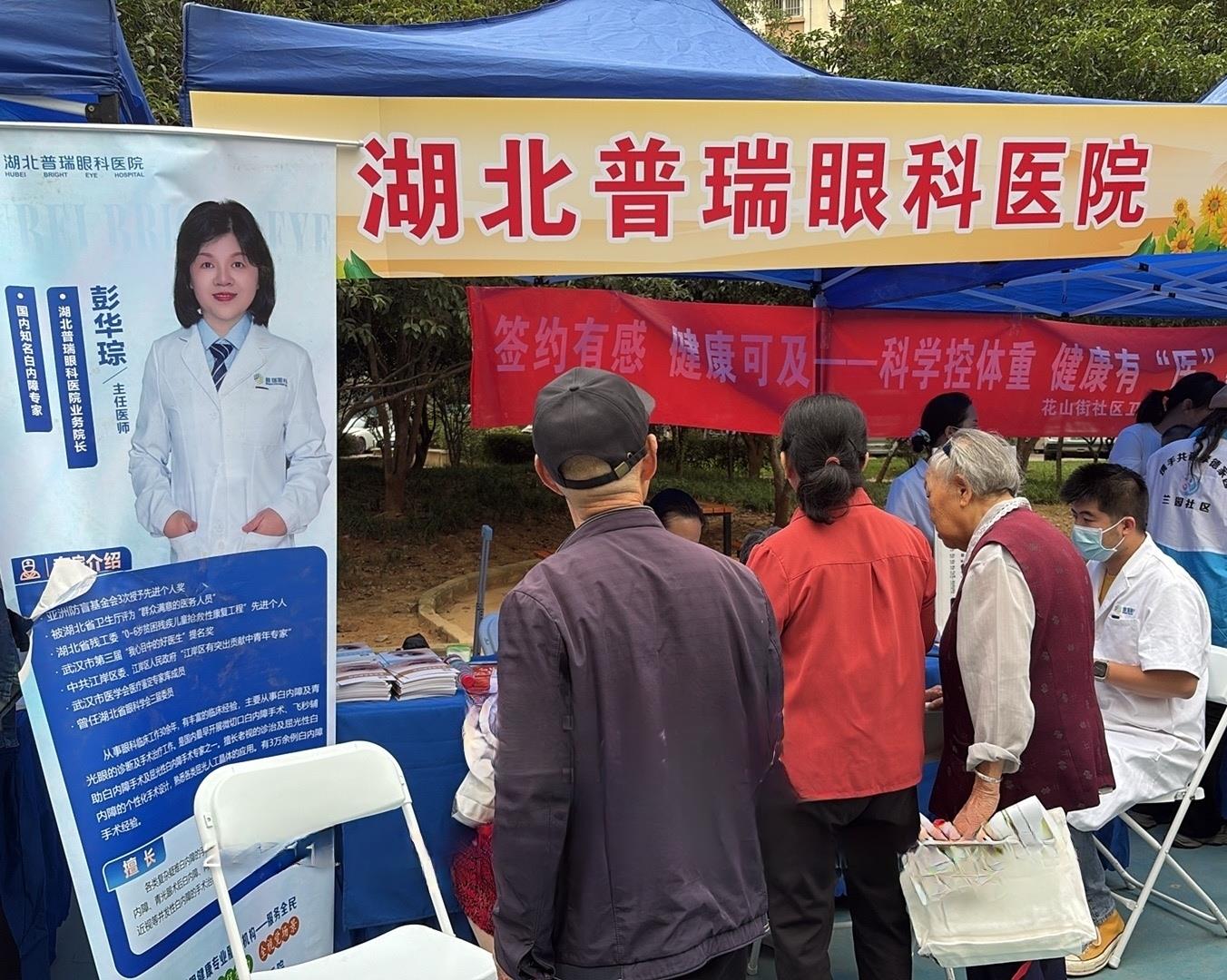 在义诊服务区,常规检查区为居民免费提供血压、血糖测量、体质指数计算、心动图、骨密度检测及乙肝筛查等服务,不少老年人早早排队,只为了解自身基础健康状况;专科咨询区汇聚多方力量,武汉市东湖医院(武汉市老年病医院)专家提供老年慢病管理指导,普瑞眼科医生开展眼底检查与视力评估,花山街社区卫生服务中心团队则覆盖口腔检查、义齿咨询、心理健康疏导、狂犬病防控解答、妇科两癌筛查咨询等领域,同时现场办理家庭医生签约,让居民“家门口见专家”;康复理疗体验区的中医拔罐、艾灸等服务更是人气火爆,传统疗法的舒适体验让老年朋友们赞不绝口。