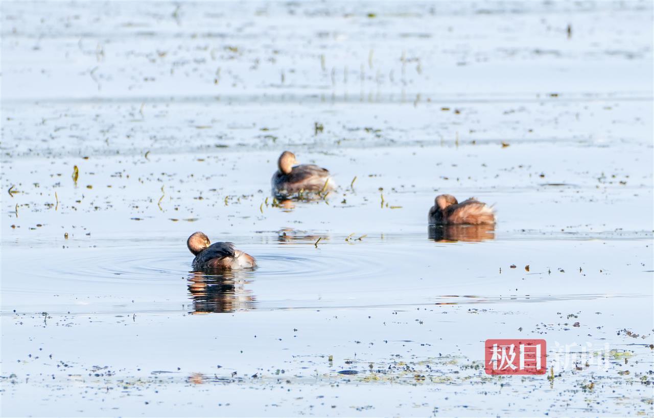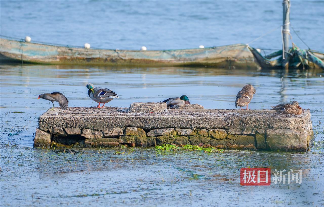 10月11日下午,武汉迎来秋高气爽的好天气。新闻记者在东湖听涛泳场旁看到,澄澈的湖面上波光粼粼,小鷿鷈、黑水鸡、绿头鸭等水鸟三五成群,或潜入湖中悠然觅食,或停靠岸边梳理羽毛,一派生机盎然的景象。