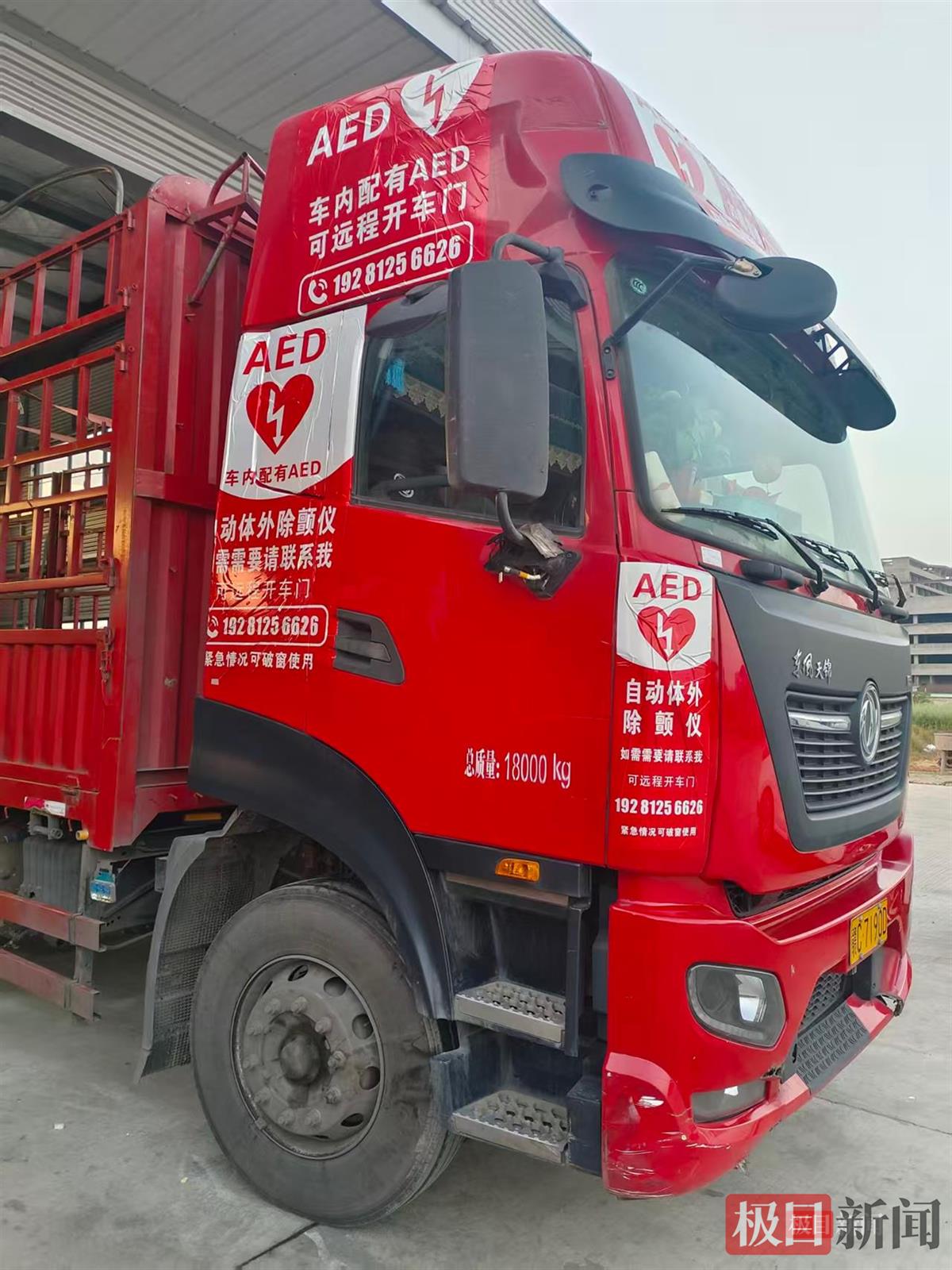 “车内配有AED,可远程开车门”“自动体外除颤器,有需要请联系我,紧急情况下可破窗使用”——一辆车牌号为“赣C7190D”的大货车,周身张贴着醒目的标识,静静停靠在武汉某路段,犹如一座移动的“生命守护站”,吸引了不少路人的目光。