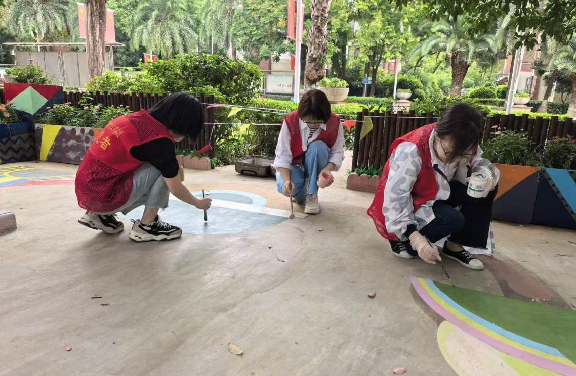 除了天马行空的童趣图案,志愿者们更用色彩改变了小区的氛围。昔日冷清的空地,如今变成了吸引居民驻足流连的风景。生动的图案成为了居民相遇时的共同话题,让原本陌生的邻里关系在欢声笑语中熟络起来,也让公共空间真正成为了促进交流的社交中心。