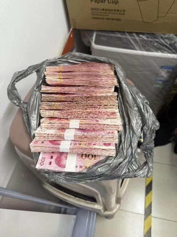 陈女士拿出了那只黑色尼龙袋,里面装满了现金,共计11万元。陈女士说,自己已经与“平台客服”约定,在3小时后,把这笔现金放到对方指定的地点,就能完成“充值”。