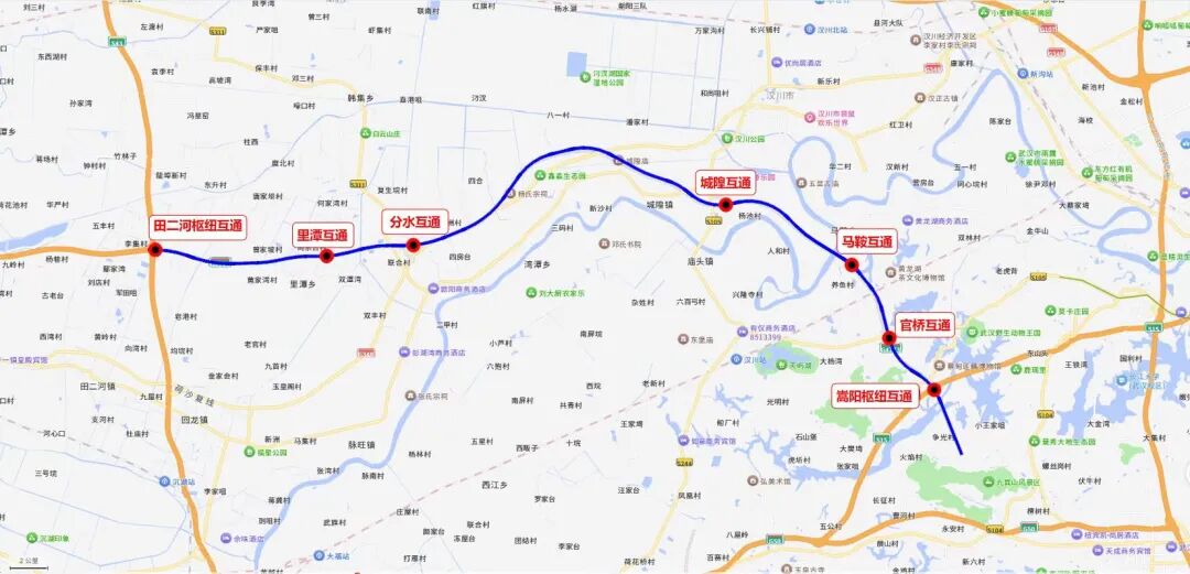 武天高速武汉至汉川段项目全长约53.158公里,于2022年12月开工,由武汉城发集团所属武天高速公司承建,设计标准为双向六车道,时速120公里。