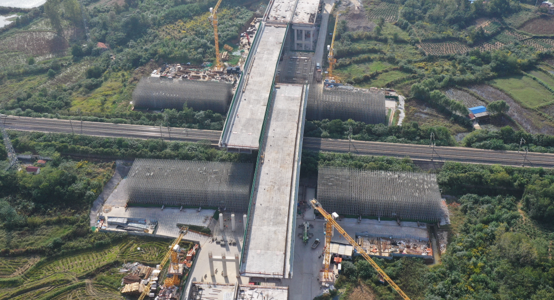 武天高速武汉至汉川段跨沪蓉铁路大桥位于汉川市马鞍乡。武天高速公司项目负责人介绍,大桥转体施工采用“先预制、后转体”的一体化施工工艺,在铁路“天窗期”内完成同步转体作业,时间、角度与平衡控制精度达毫米级。