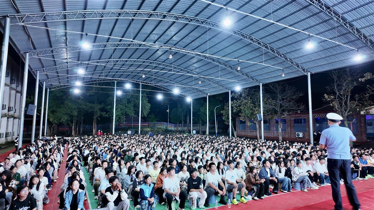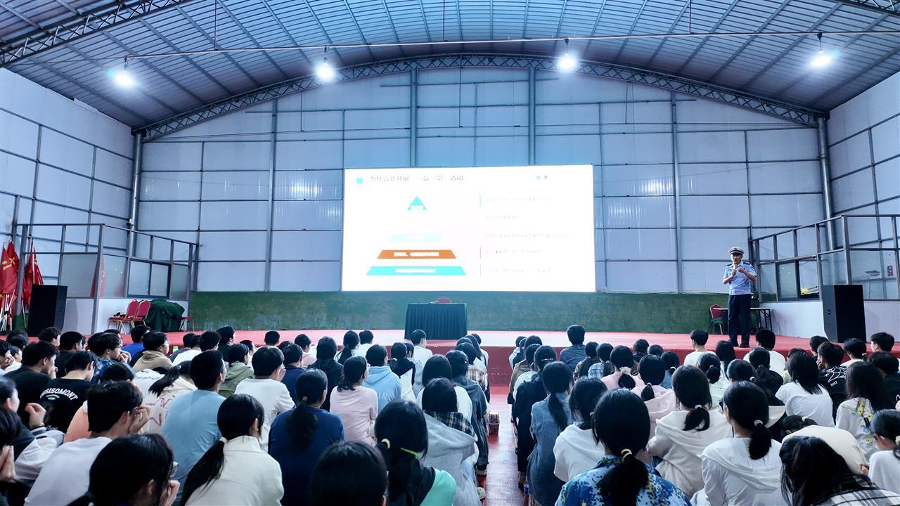 在江夏职业技术学校,民警祝明军聚焦高中生出行安全需求开展交通安全宣教。