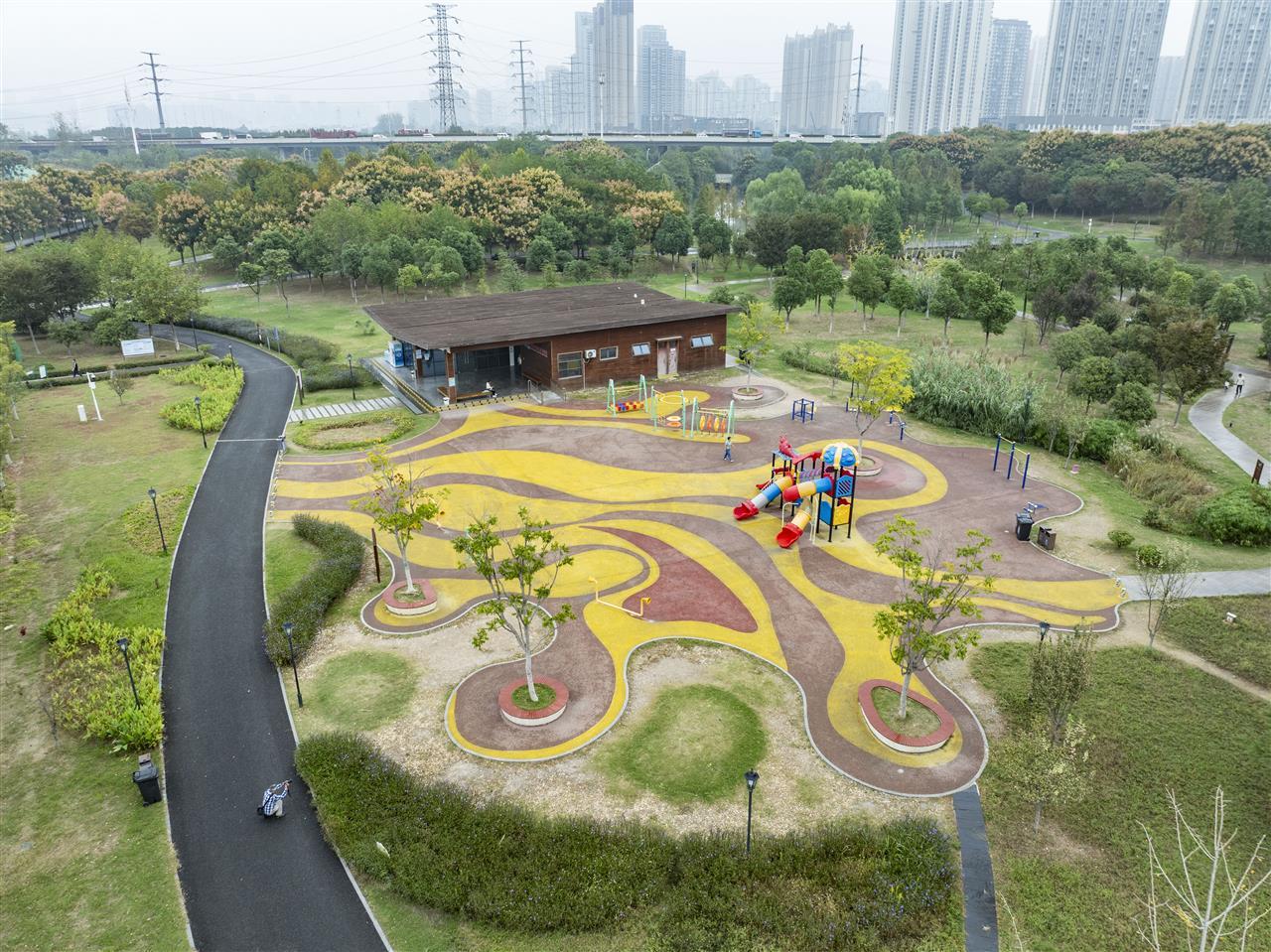 武汉经开区三角湖北路紧临海伦春天等多个小区,很难想象,这片生机盎然的空间有着曲折的变迁史:2021年之前,这里还是一片闲置空地,后来曾搭建起驾校,驾校关停后又陷入长时间的闲置状态。在武汉经开区启动空置地块改造工作,将这里规划成公园后,在改造完成初期仍问题频发——湖边柳树枝条乱得像“炸开的头发”,草坪被杂草侵占,想扔垃圾得绕半圈找旧垃圾桶,休息长椅掉漆松动不敢坐。
