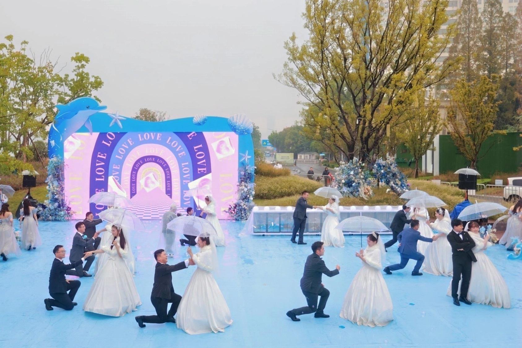 10月15日,武汉市武昌区民政局联合湖北省人民医院共同举办“和美武昌红·温馨人民 幸福港湾”集体婚礼,10对新人在永恒的江水见证下结为百年之好,以实际行动践行婚俗新风尚,将爱与承诺书写在金色的秋天里。