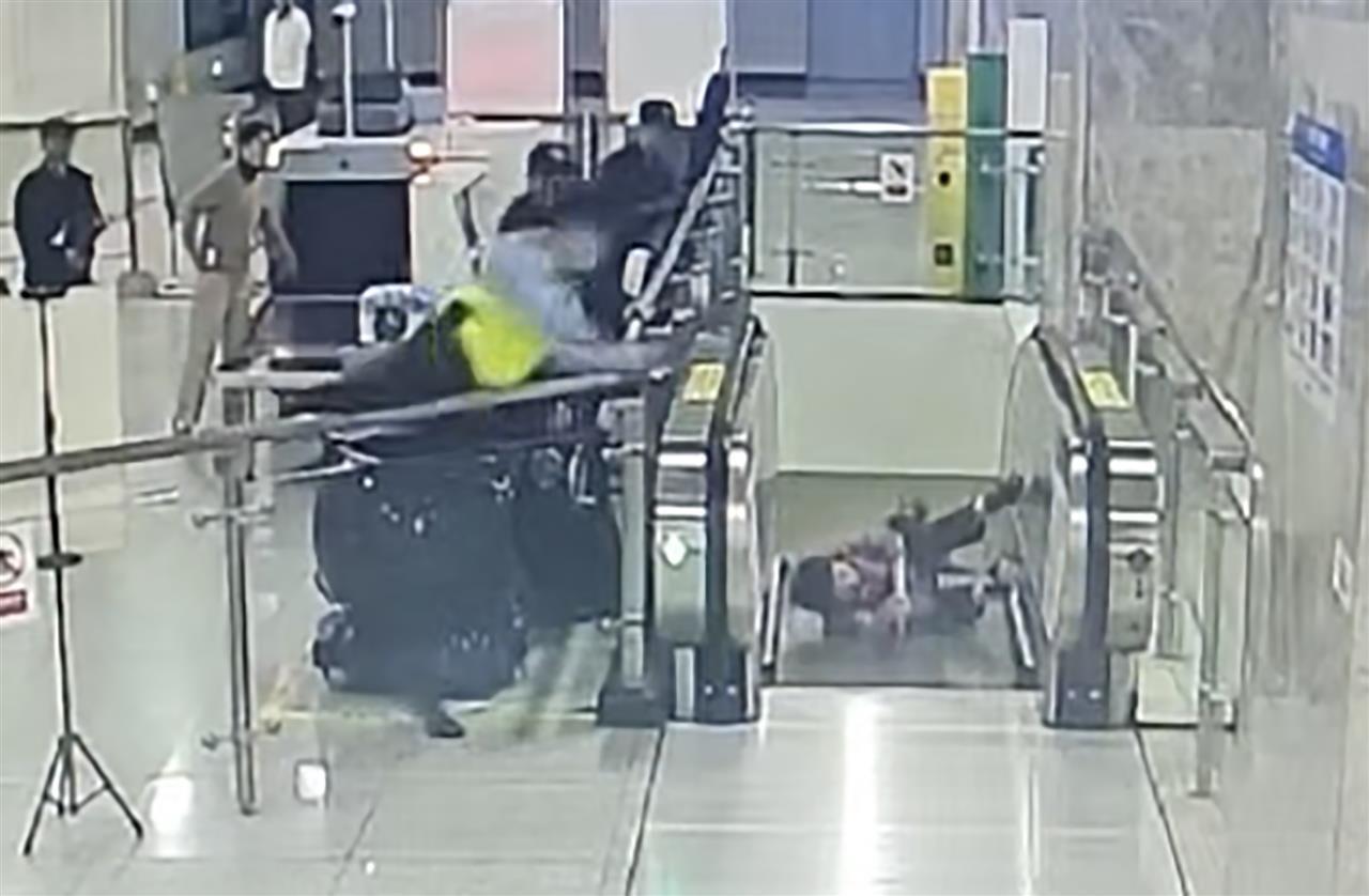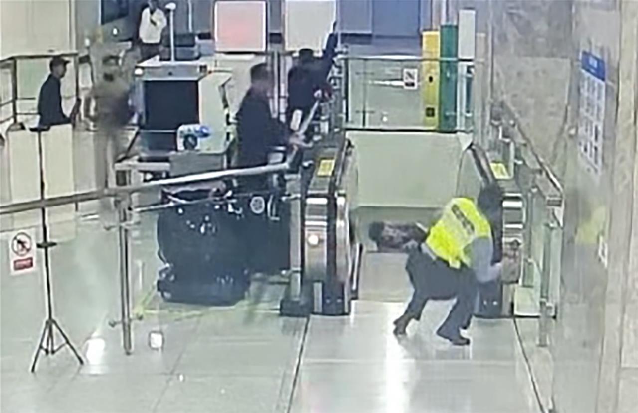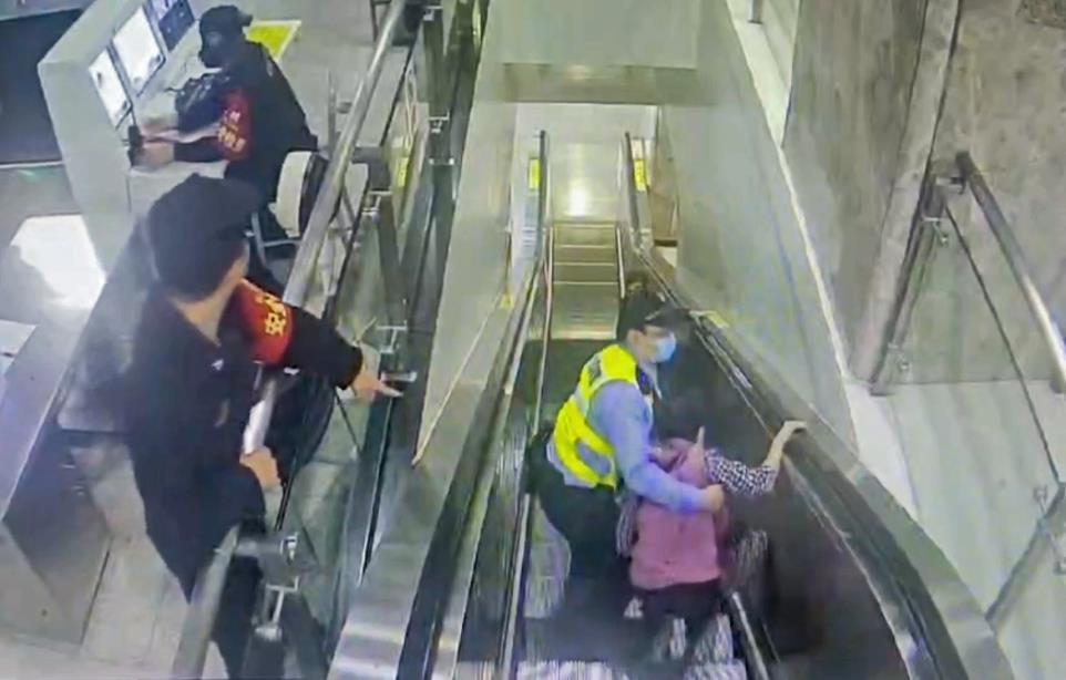 10月16日,一名老人在地铁站乘坐扶梯时不慎摔倒。正在执勤的轨道辅警发现情况后,飞身翻越栏杆赶到扶梯口,按停扶梯救下摔倒老人,整个过程仅用时5秒钟。