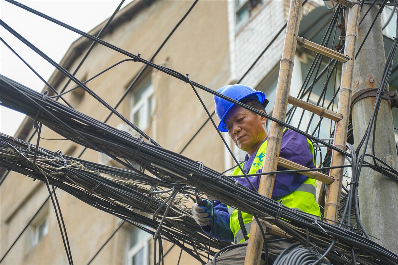 地面改造的同时,“头顶上的革命”同步推进。沿街2000余米纵横交错的架空管线重新规整绑扎,800余米管线埋入地下,“空中蜘蛛网”得到明显改善。