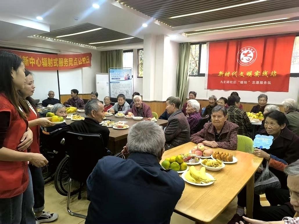 10月15日上午,武汉东湖高新区豹澥街道九龙湖社区老年活动中心里欢声笑语不断,一场由社区新时代文明实践站专为社区高龄老人打造的集体生日会在此温馨启幕。社区工作人员与志愿者们精心筹备,用贴心服务与真诚陪伴,为老人们送上了一场充满仪式感与幸福感的生日祝福。