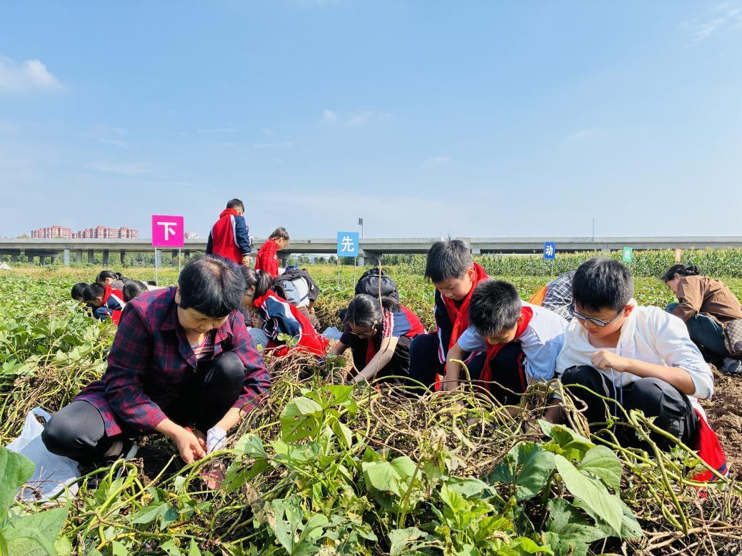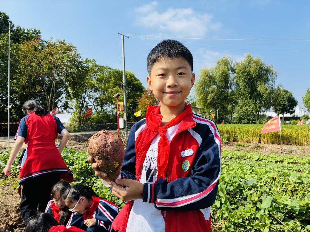 “我数到三,大家一起挖!看哪组挖的红薯又大又完整!”随着居民王师傅的口令,由居民与青少年混编的五个小组展开挖薯比赛。58岁的王师傅曾在农场工作多年,他一边示范如何通过红薯藤判断地下果实位置,一边传授技巧:“土松的地方用锄头挖,土硬的地方用手刨,这样不容易挖断。”在王师傅的指导下,居民何阿姨与“小候鸟”宗语欣结成最强搭档。何阿姨用锄头松土,宗语欣则跪在地上轻轻扒开泥土。“这里有个大红薯!”宗语欣兴奋地喊道。何阿姨笑着递过小铲子:“别着急,我们顺着根须慢慢挖。”当她们完整挖出一个重达三斤的“红薯王”时,周围爆发出热烈的掌声。比赛结束后,王师傅逐个点评:“这组配合最默契,红薯断口最少,奖你们每人一个小红旗!”