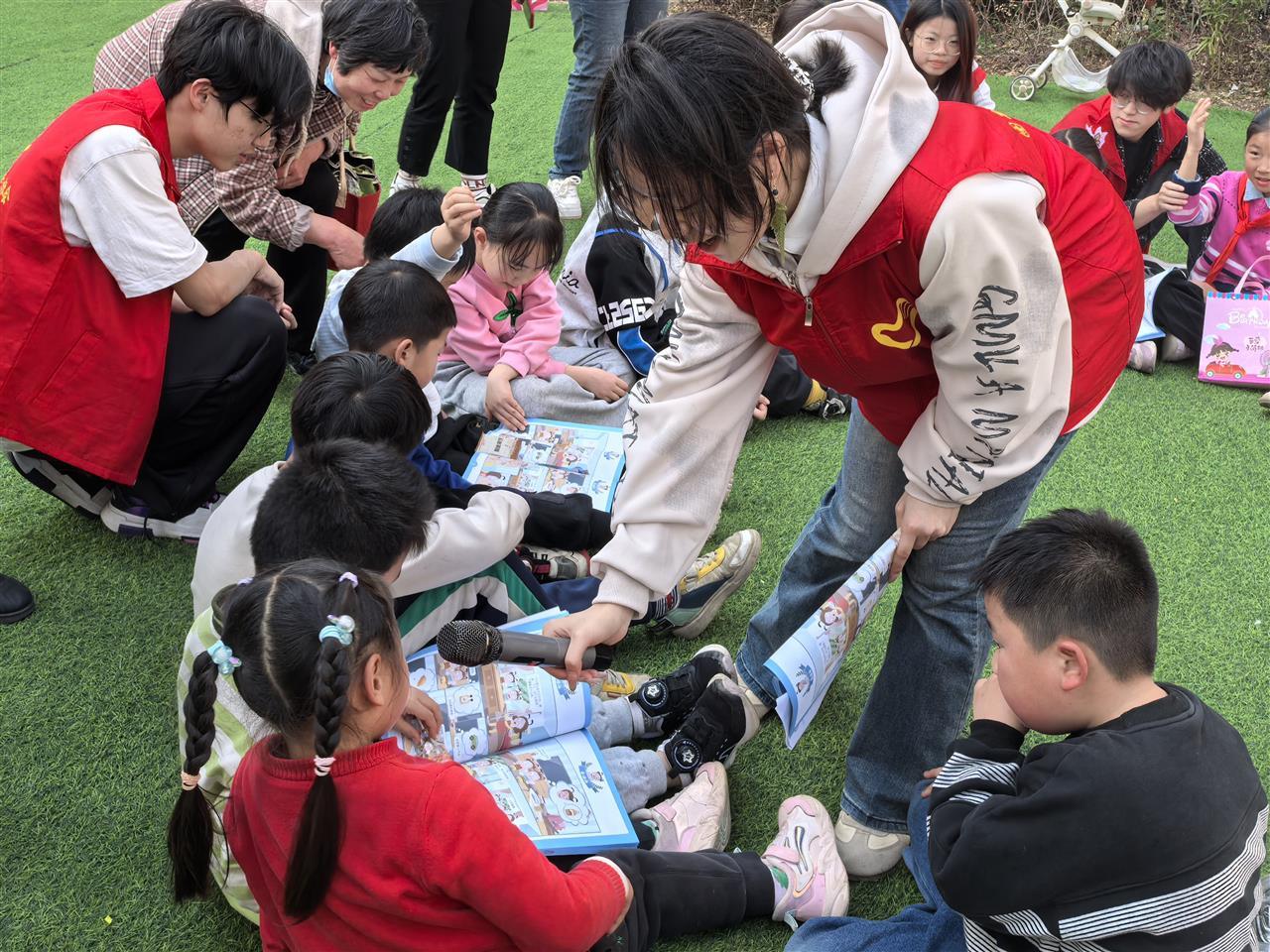 3月22日,首期“数学与理财”主题读书会在社区草坪上拉开帷幕。志愿者们精心准备了绘本《理财与数学》和模拟超市购物场景,引导孩子们在游戏中学习加减运算与金钱管理。