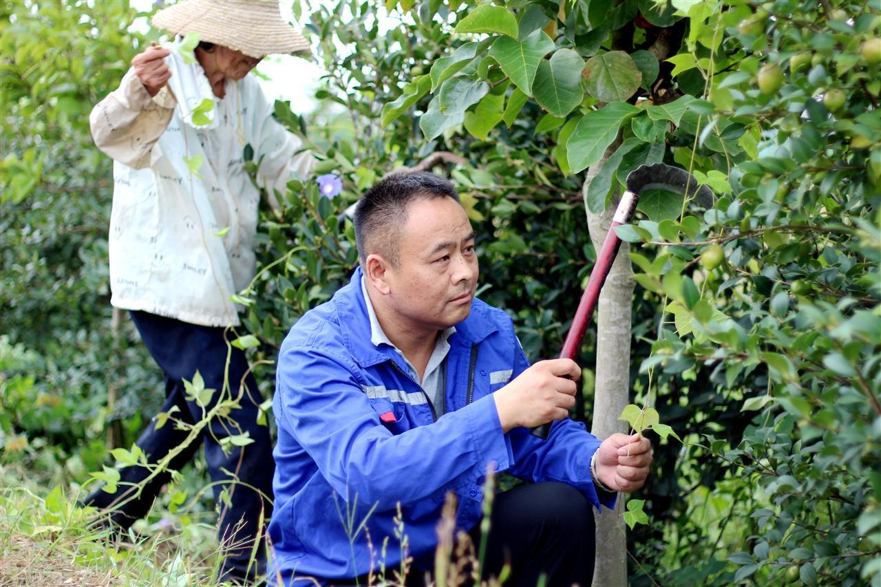 “嬢嬢们,小心脚下的水沟,慢点干,别着急!”近日,新闻记者看到,在四勿岗村油茶林间,穿着蓝色马甲的成兴干一边擦拭额头的汗水,一边反复叮嘱劳作的村民。眼前这片承载着全村增收希望的油茶林,藏着他对故土最深的牵挂。